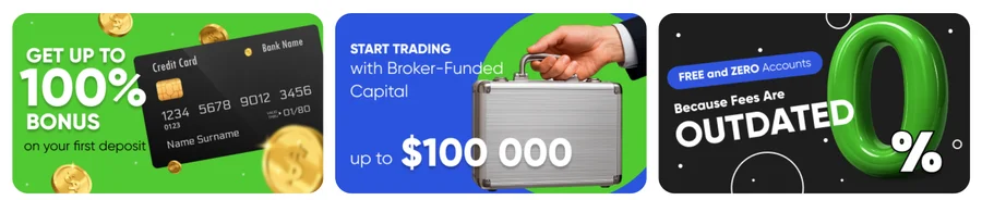 Брокер предлагает несколько форматов бонусов, ориентированных на разные категории клиентов:
